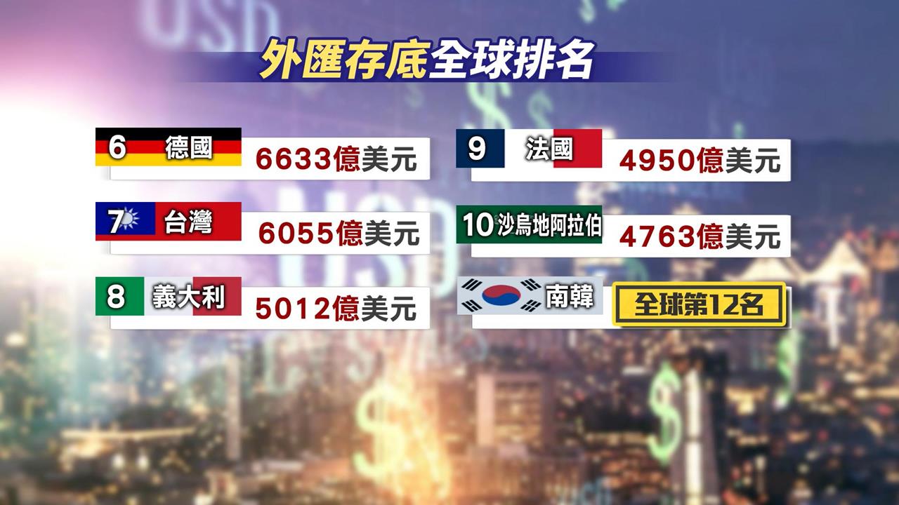 台灣外匯存底近20兆「奪全球第7」超車義、法!南韓「26年最慘」跌出前10大