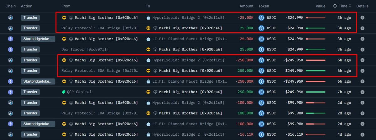 以積極參與加密市場聞名的藝人「麻吉大哥」黃立成,再度成為市場關注焦點。根據社群平台上帳號Onchain Lens追蹤,他近期再向去中心化交易平台HyperLiquid存入27.5萬美元(約新台幣890萬元)的USDC,並開立25倍槓桿的以太幣(ETH)多單;然而,由於行情持續下挫,該筆倉位隨後部分被強制平倉(partial liquidation),帳面損失擴大至約–1,516萬美元。